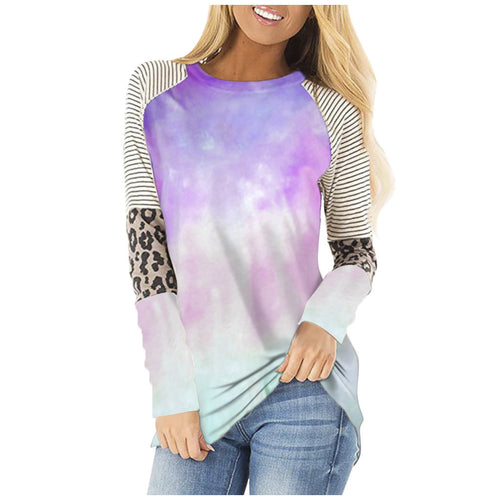 Autumn and Winter T-shirt Women Clothing Leopard Tie-Dye plus Size Long Sleeve Top T-shirt