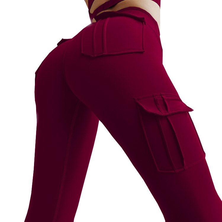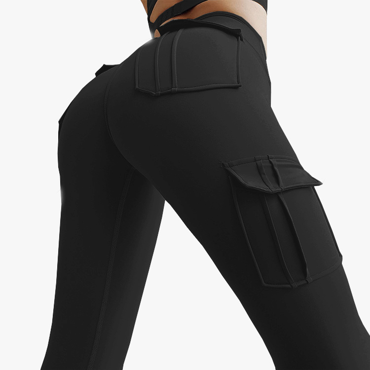 Multi-Pocket Military High Waist Ankle-Tied Four-Sided Elastic Peach Hip Sexy Highly Stretch Fitness Yoga Pants