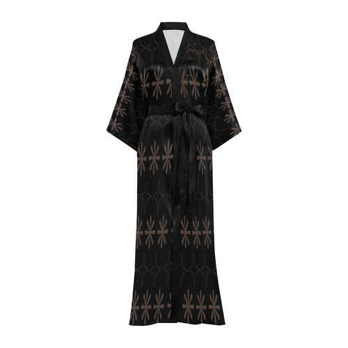 Traci K* Designer Pattern Long Kimono Robe Black Long Kimono Robe