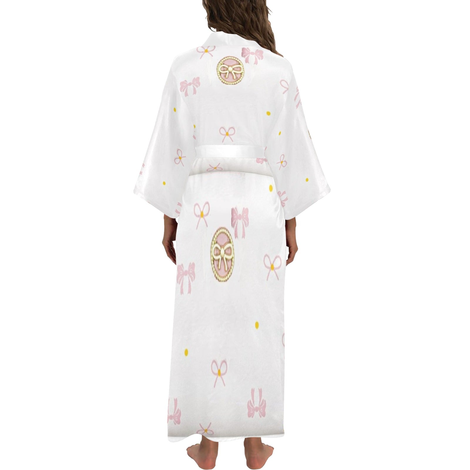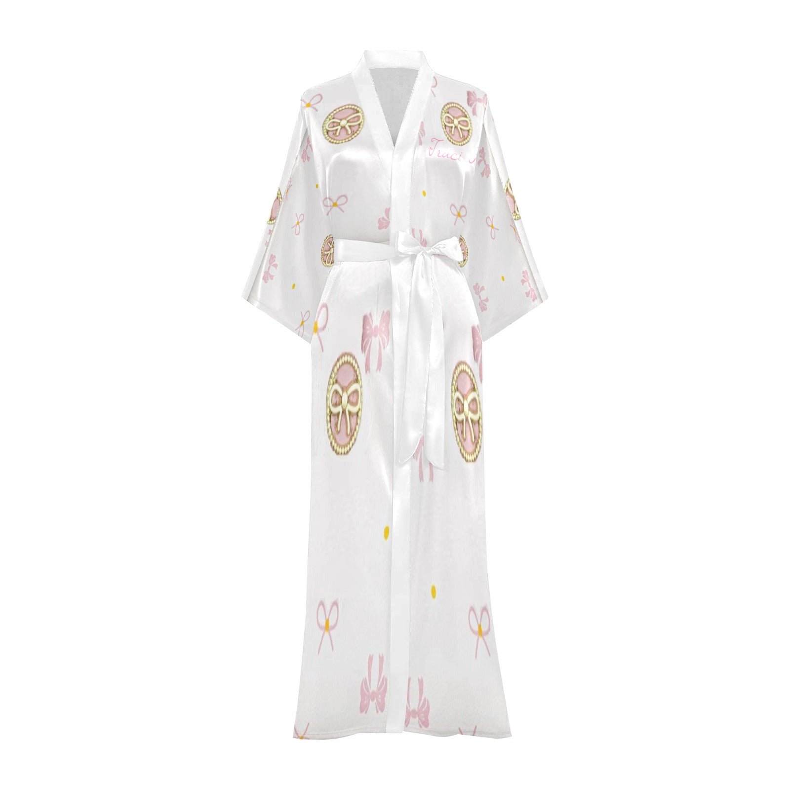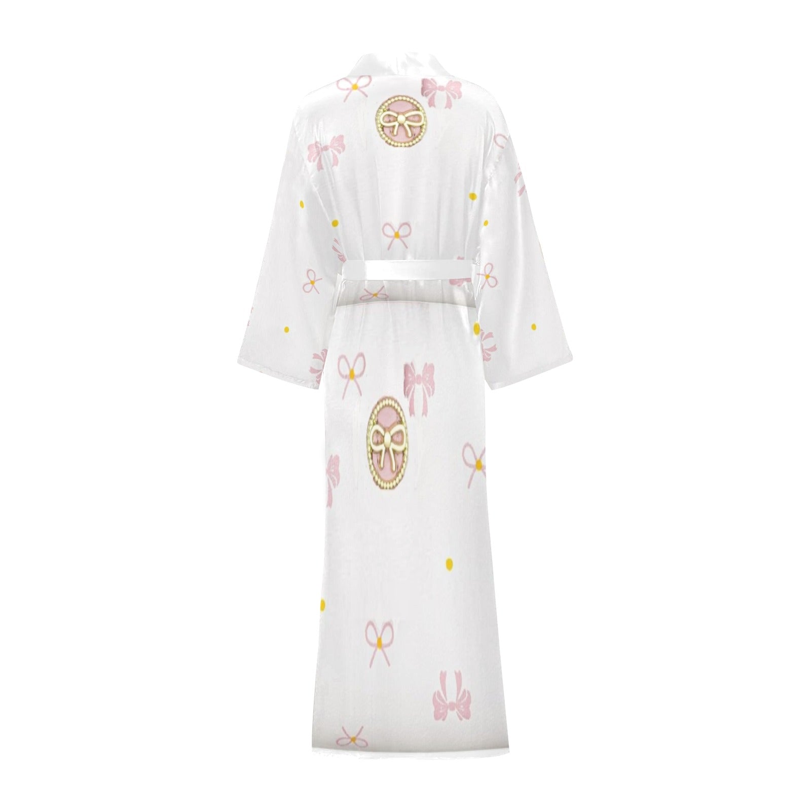 Traci K Designer Put a Bow On It Satin Pink Kimona Rober Long Kimono Robe