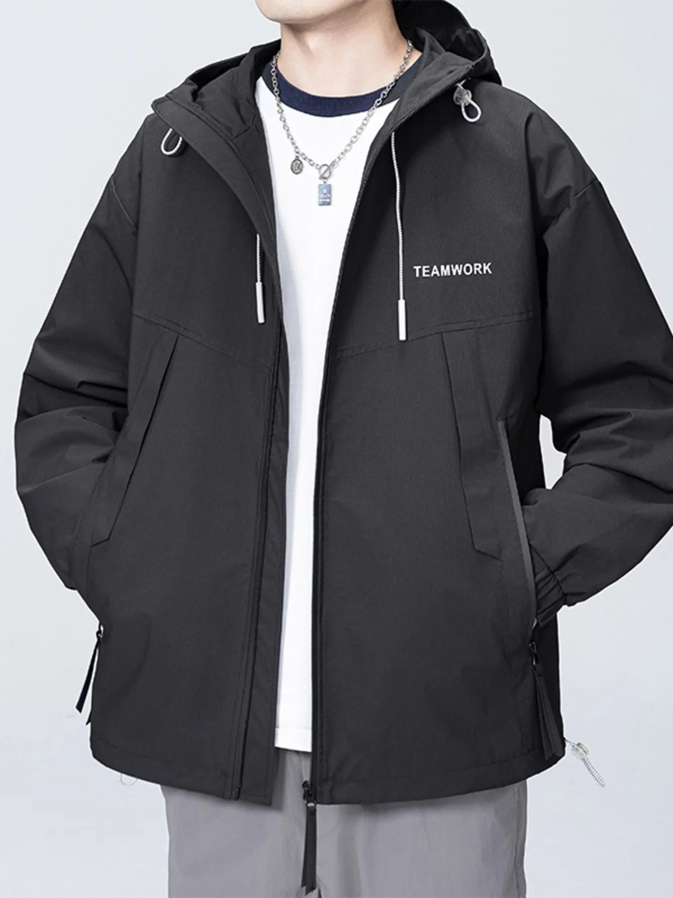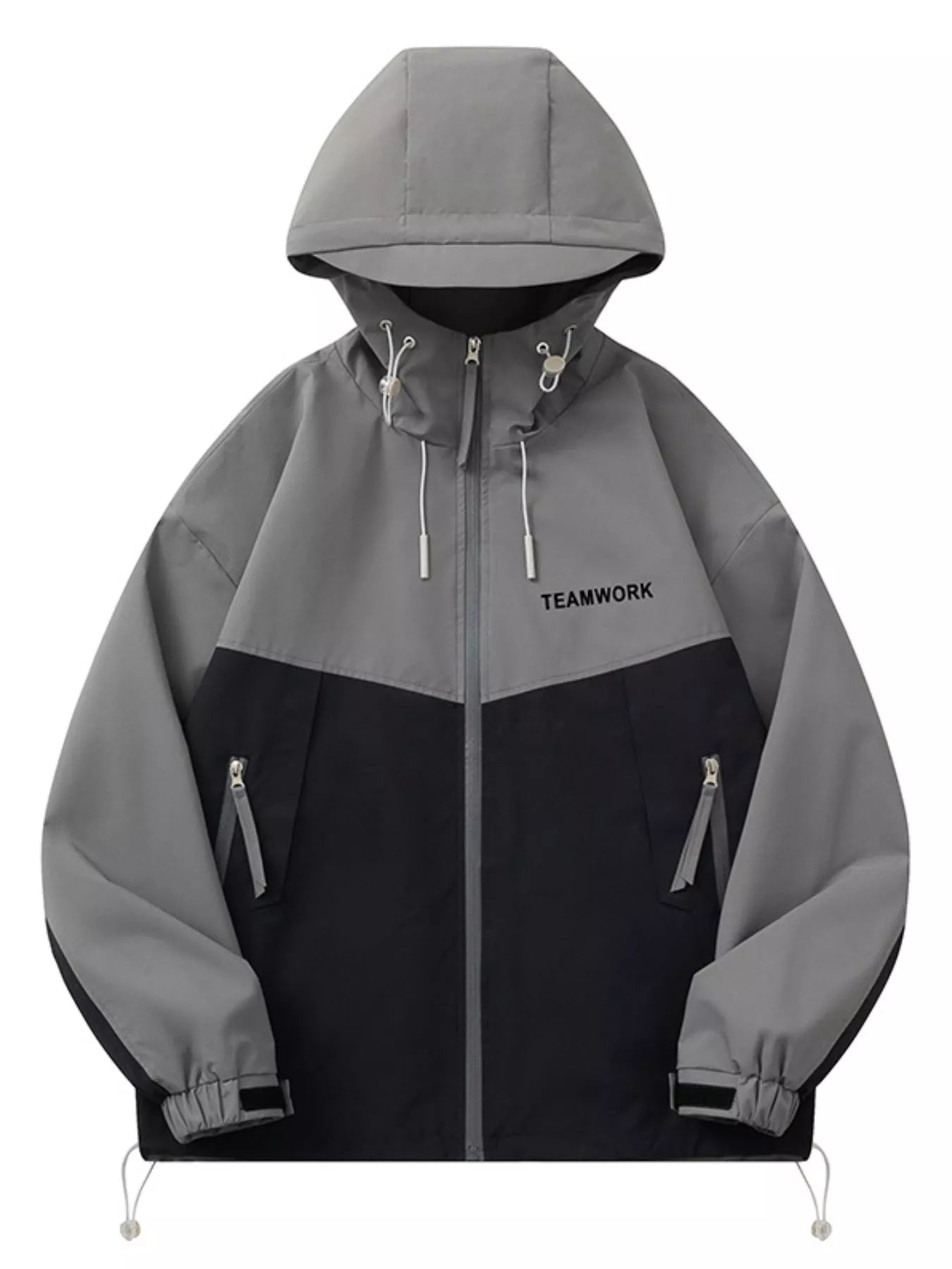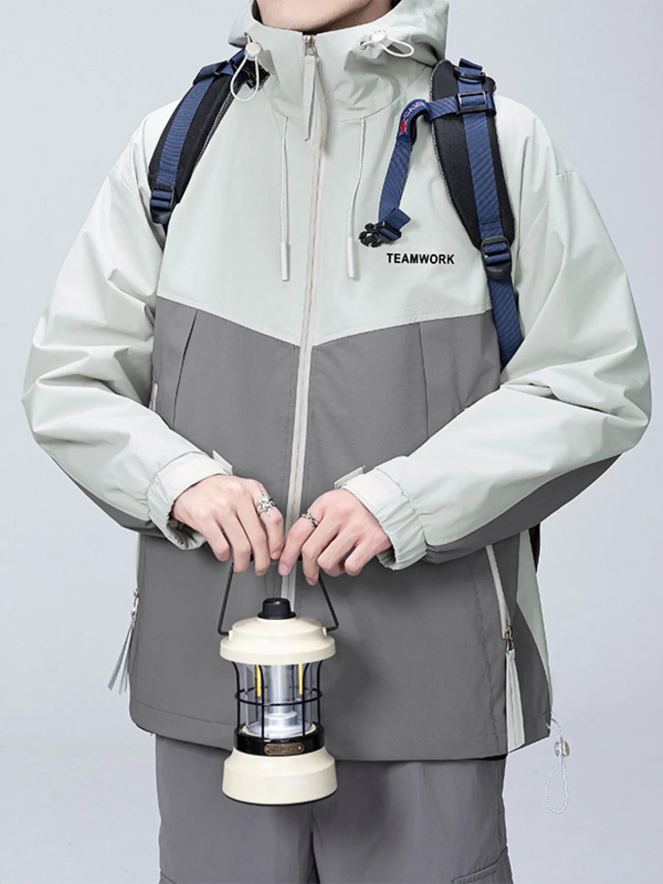 Men's Full Size Contrast Zip Up Long Sleeve Jacket Plus Size