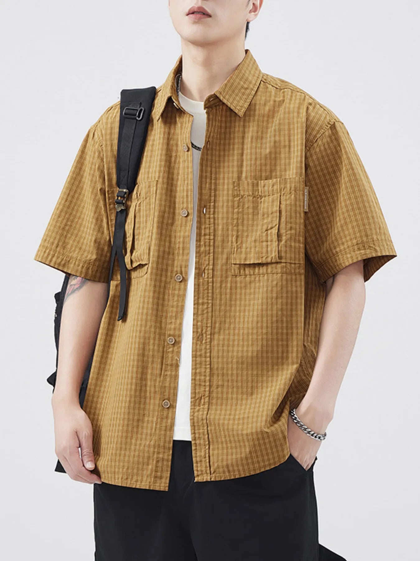 Men's Plus Size Plaid Button Up Short Sleeve Shirt