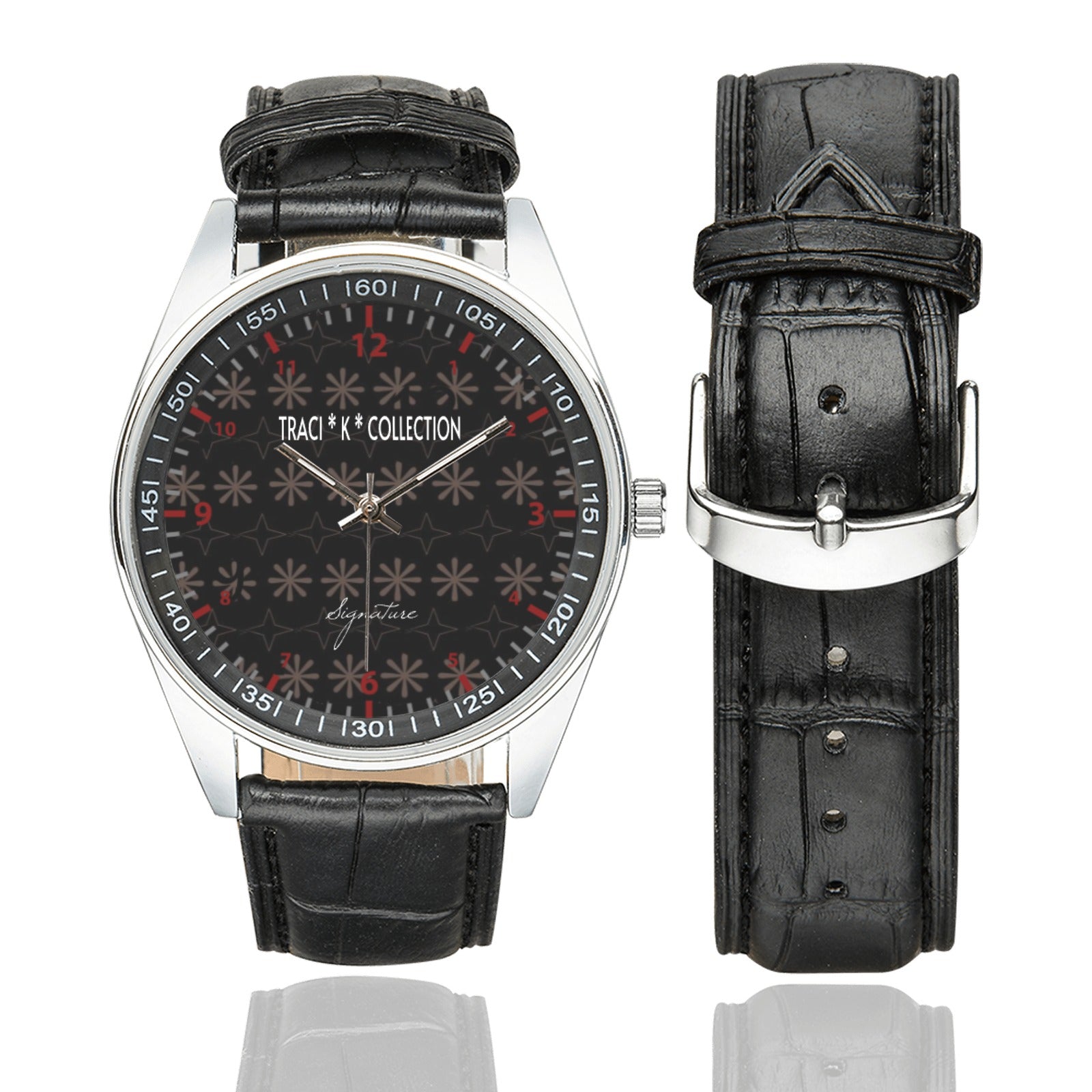 * Silver-tone stainless steel case watch featuring round dial and numeric minute per hour markers.
