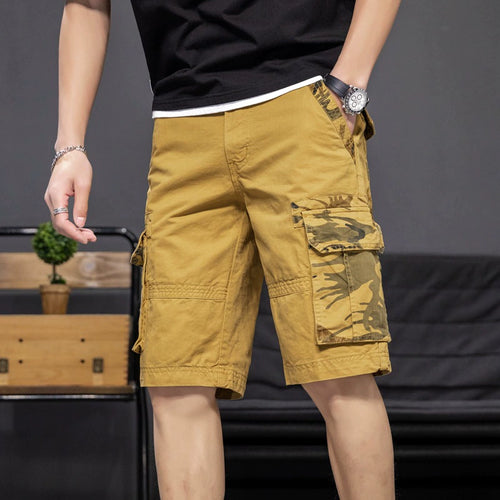 Shorts: Men's fashion, versatile, washed ready-made clothes, dyed and inserted camouflage, Multi Pocket work clothes, casual pants, dynamic pants