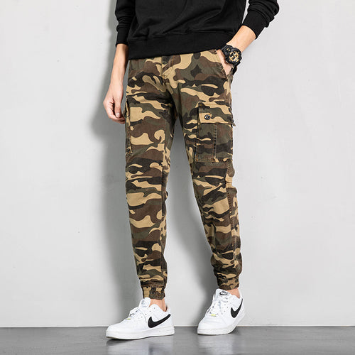Men's overalls are fashionable and versatile. Large size washed camouflage multi bag casual pants