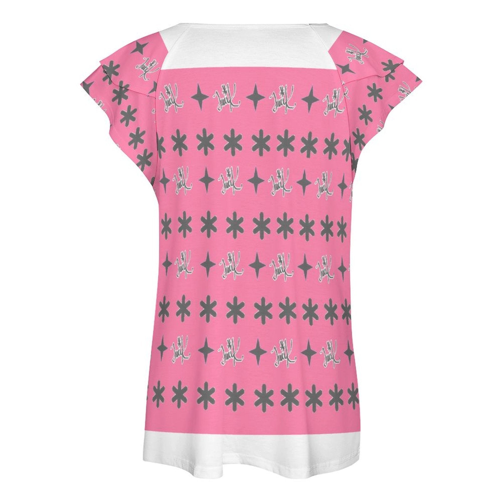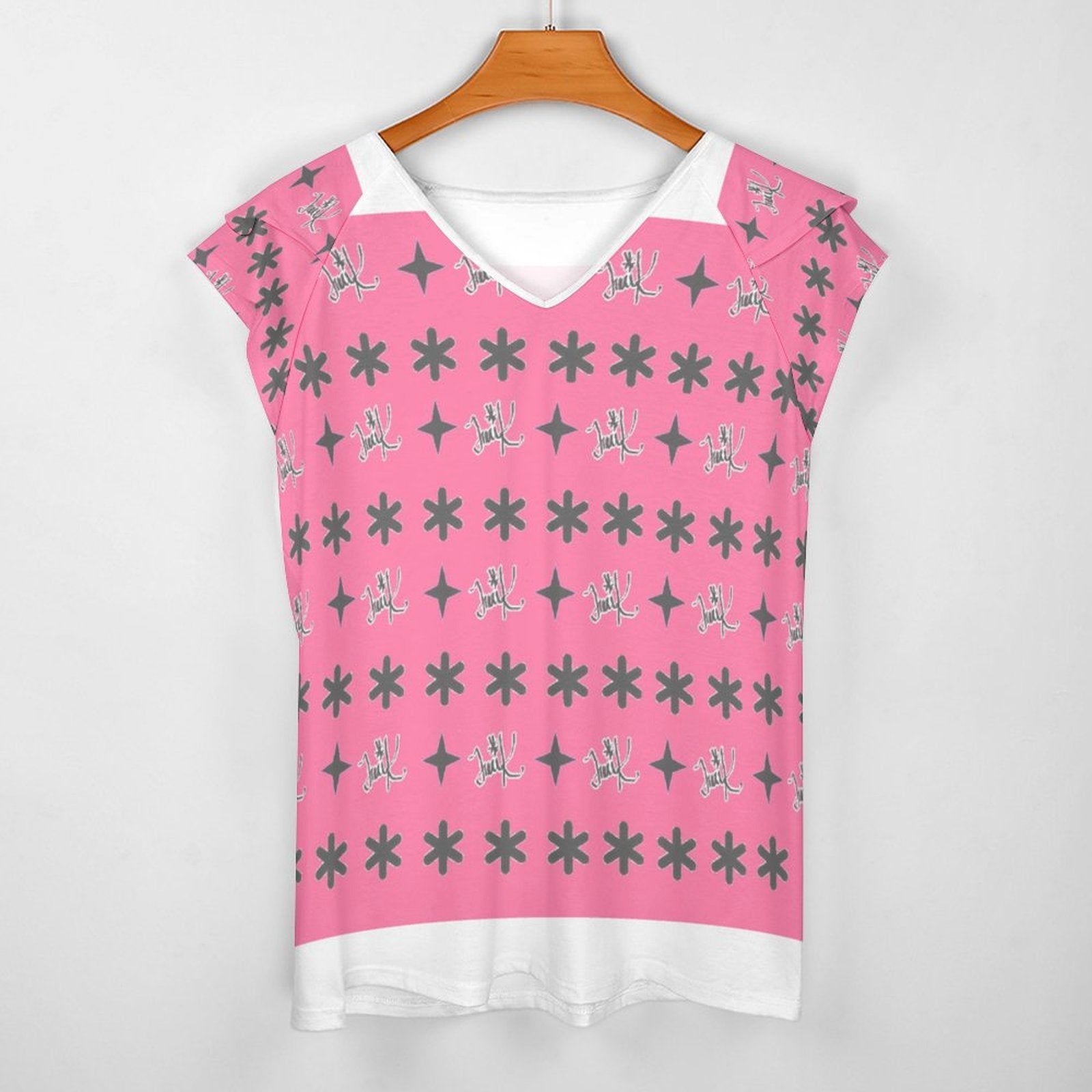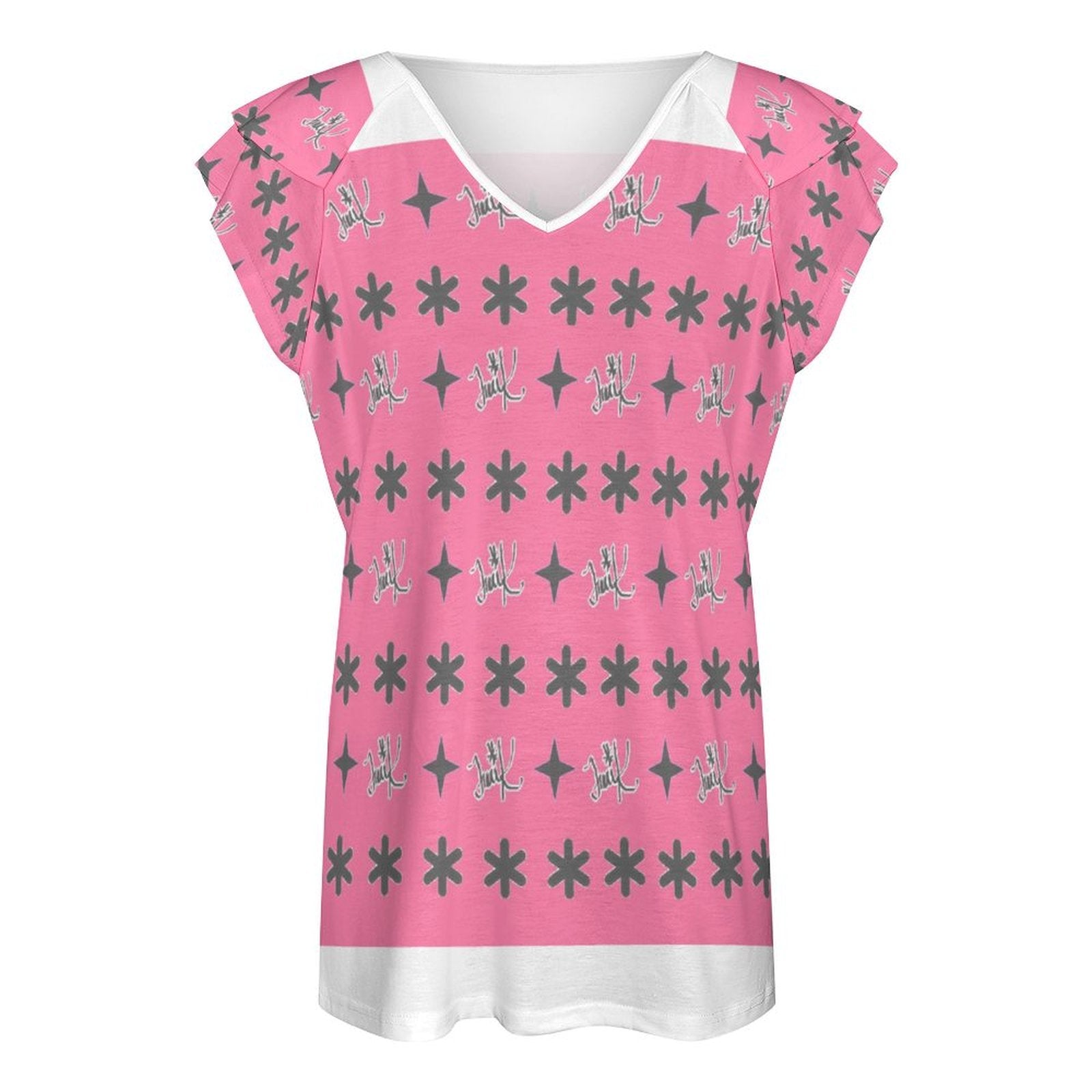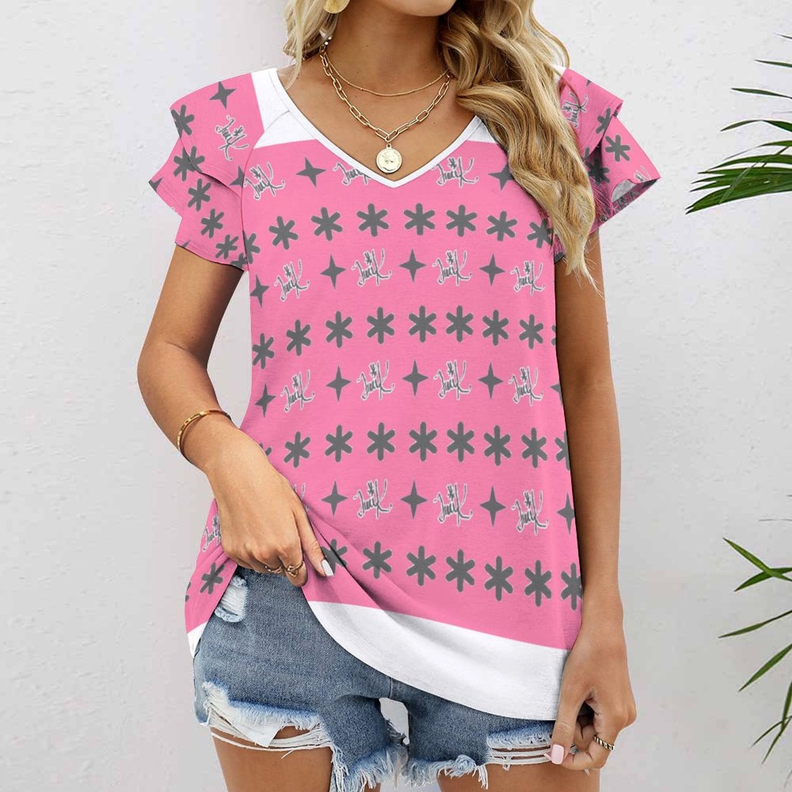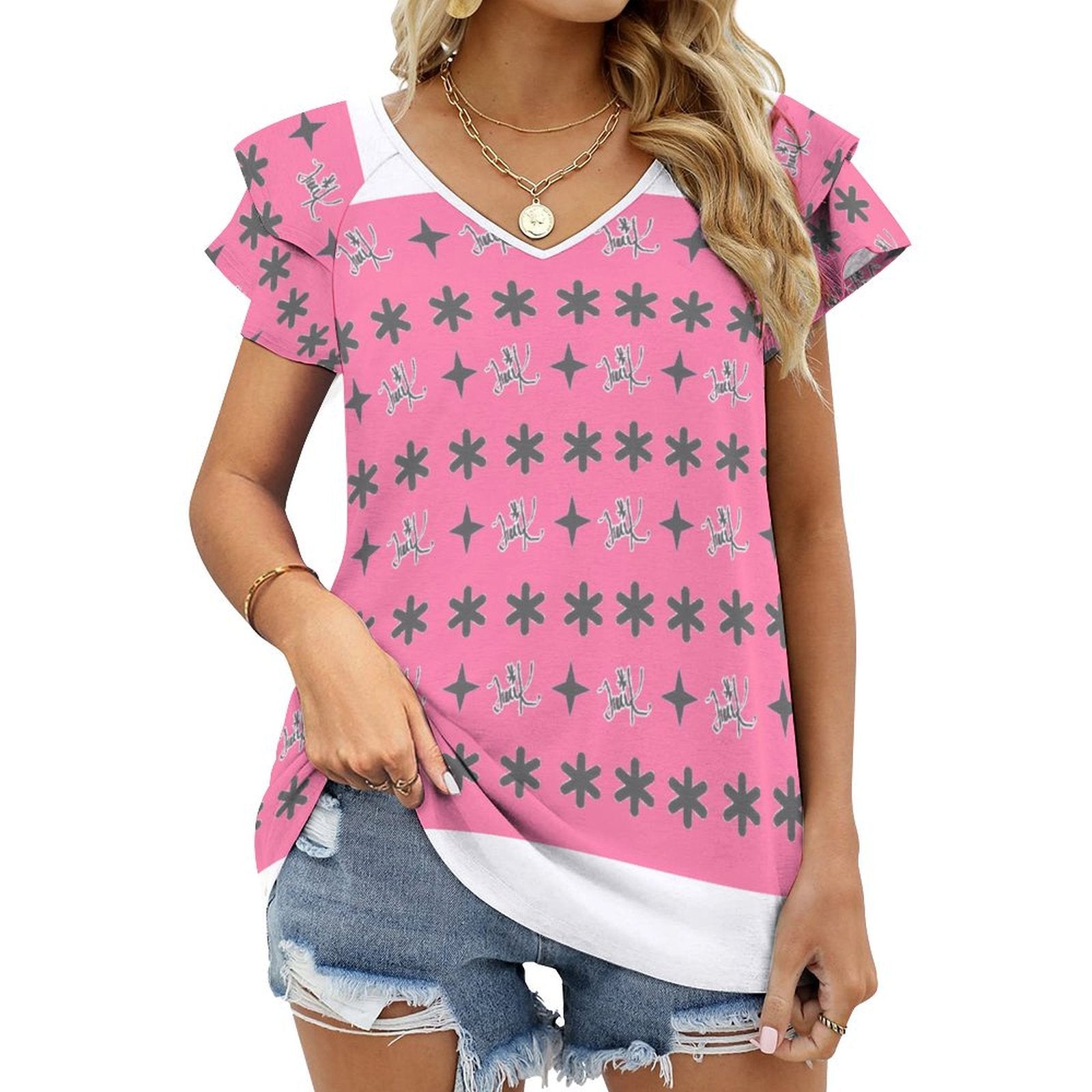 Traci K Patterned V-neck T-shirt Women's Ruffle Sleeve V-Neck T-Shirt