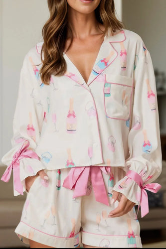 Christmas Bow Print Top and Pants 2pcs Pajama Set