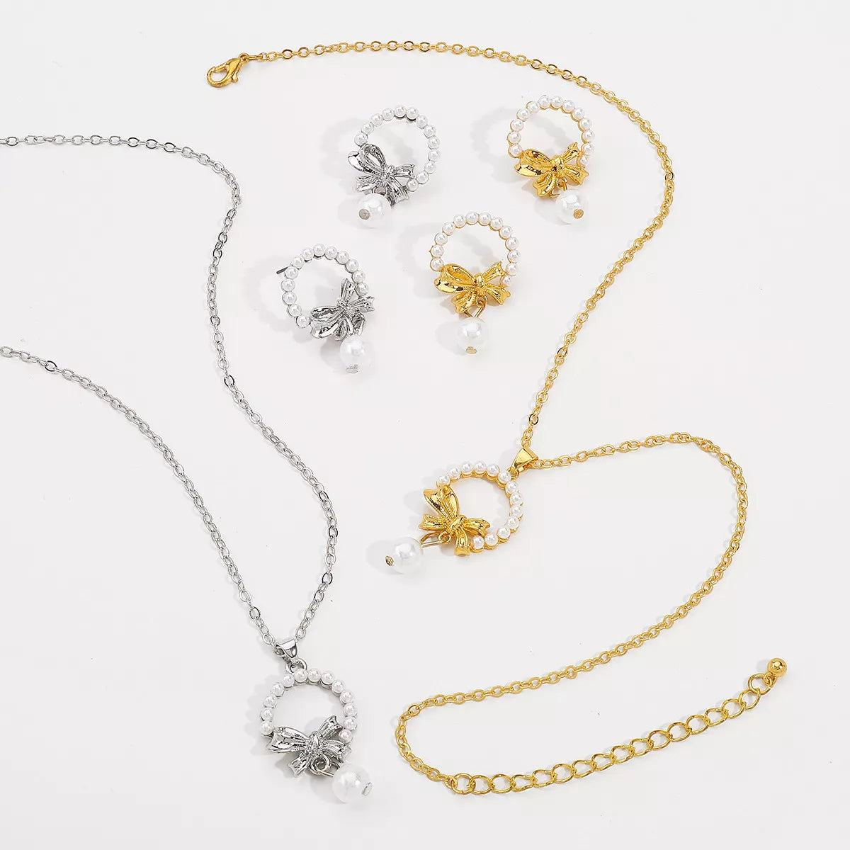 Bowknot Pearl Earrings and Pendant Necklace Jewelry Set
