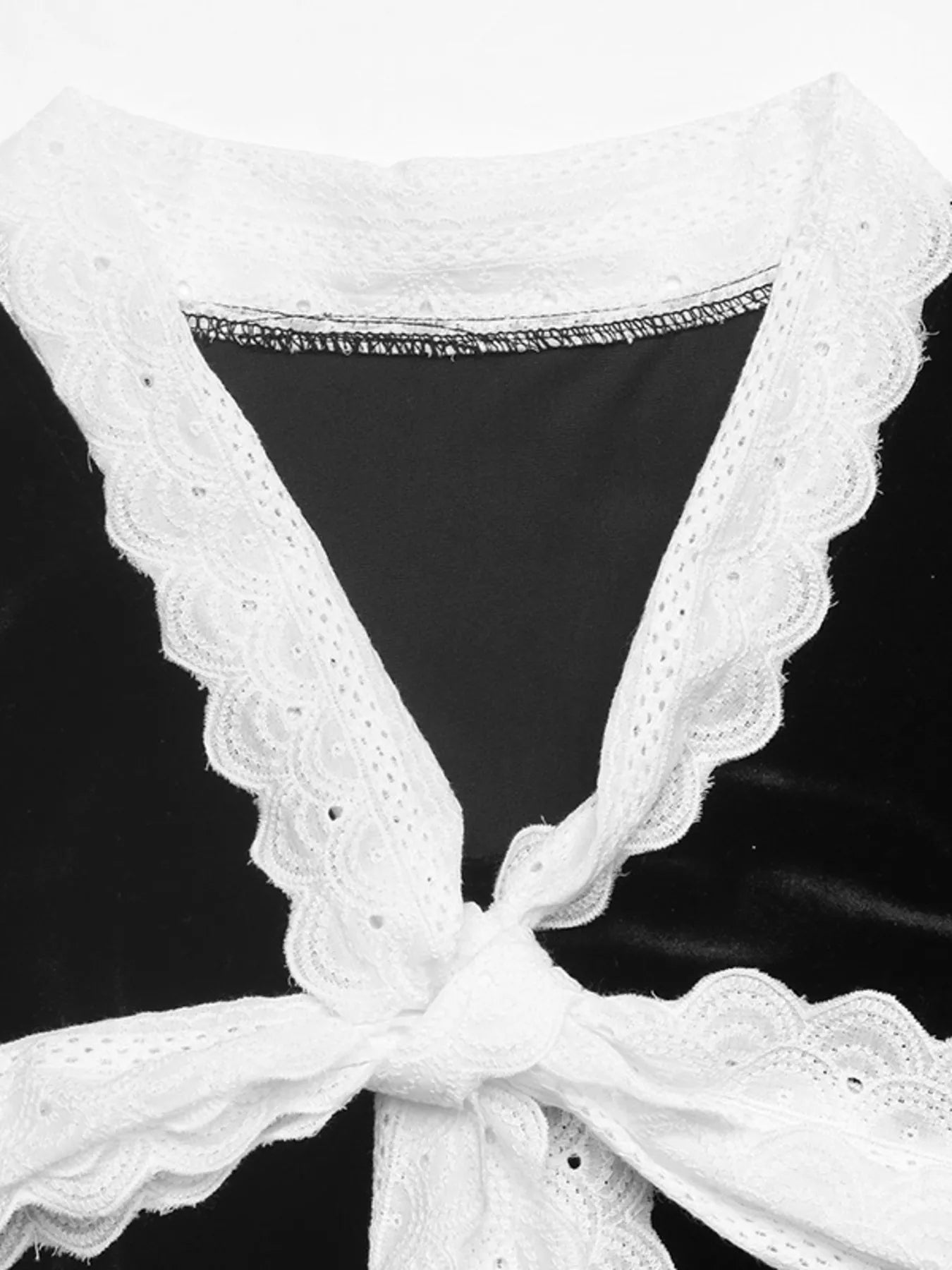 Lace Bow Tie Velvet Blouse