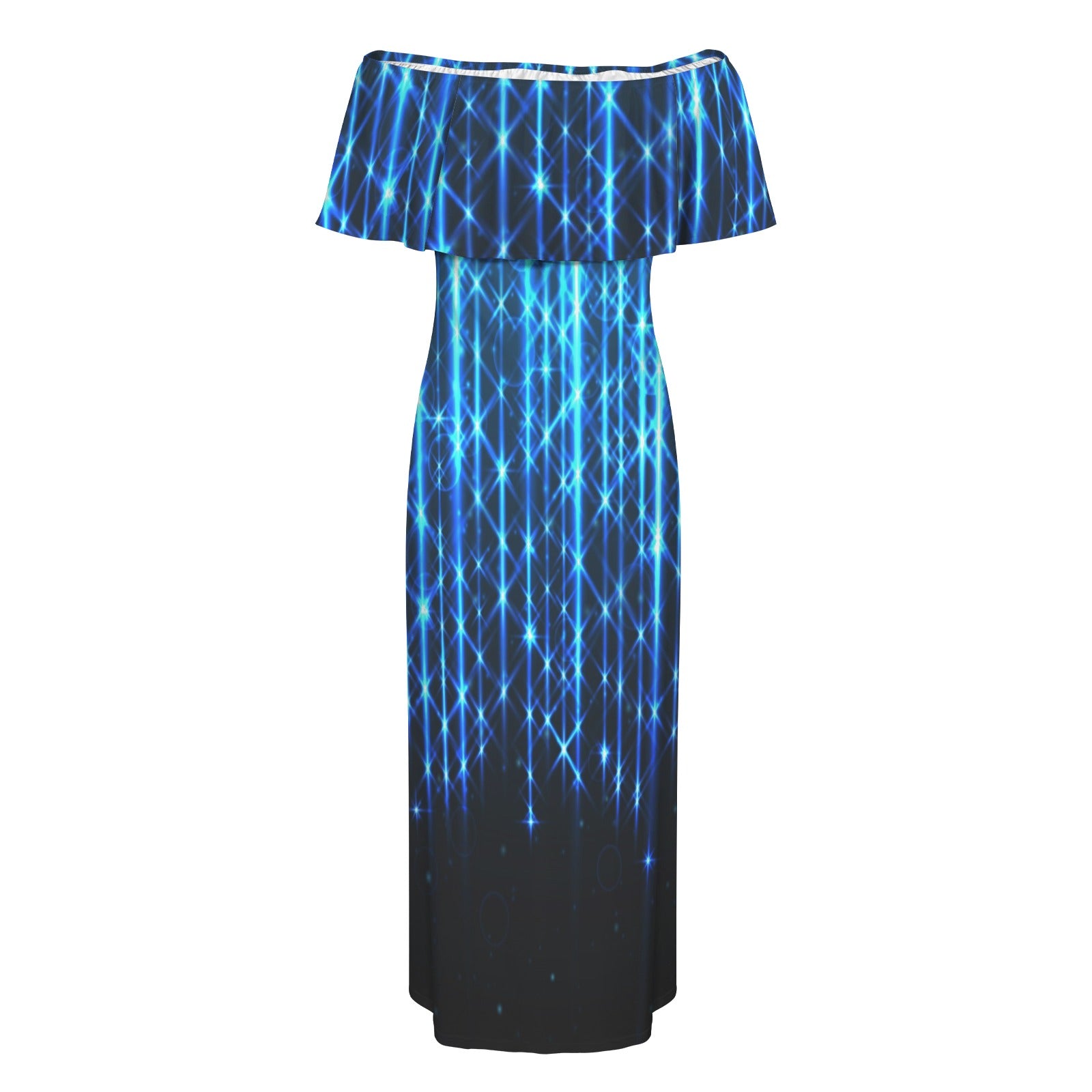 Traci K Celebration of Lights Long Ruffle Dress Women's Off Shoulder Ruffle Boat Neck Dress (Model D71)