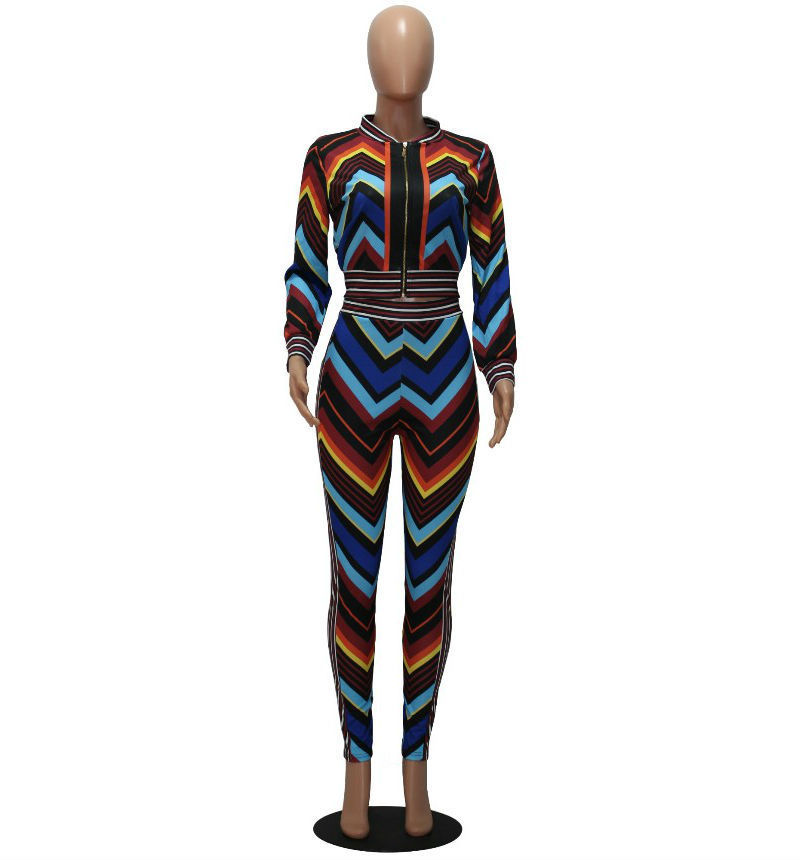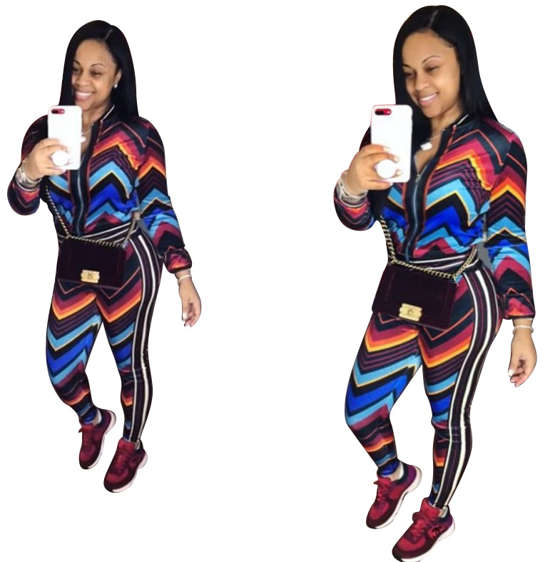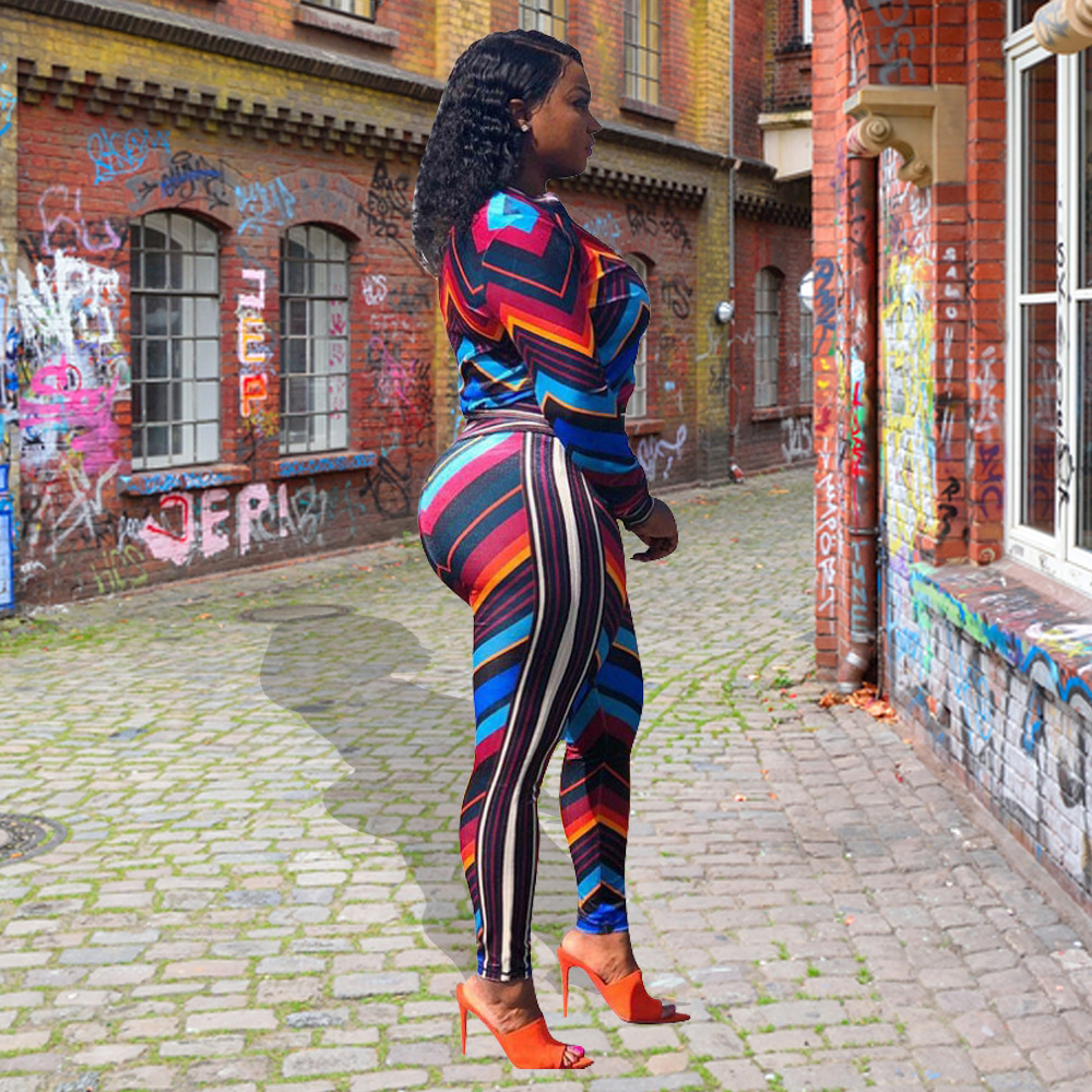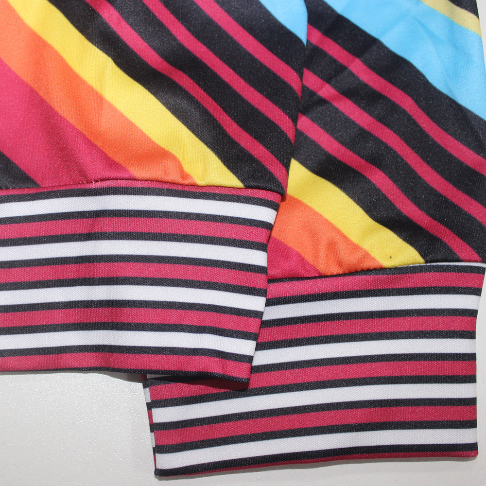 Autumn and Winter New Women Fashion Sexy Sports Stripes Contrast Color Two-Piece Set