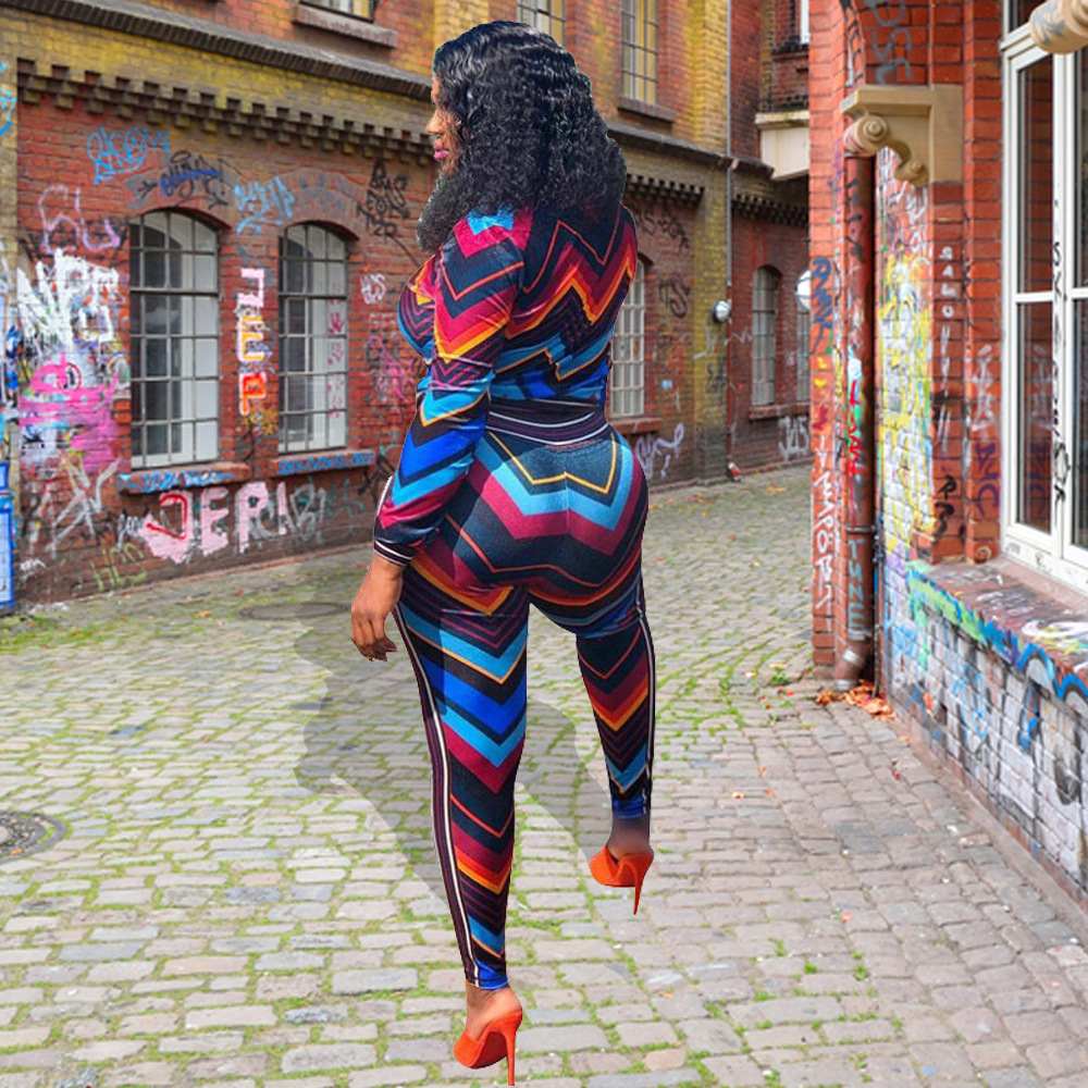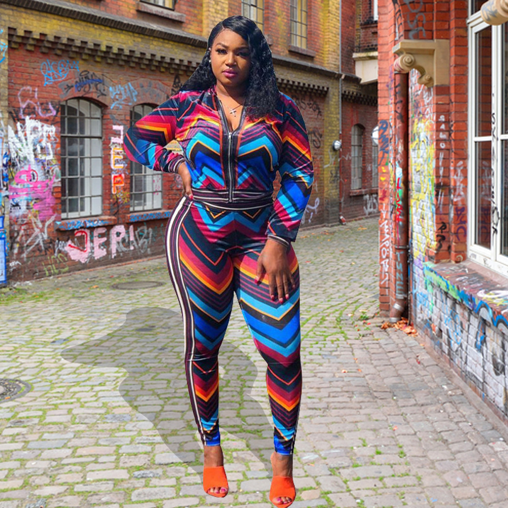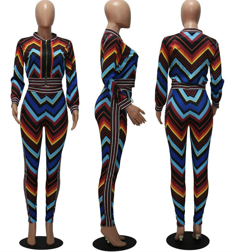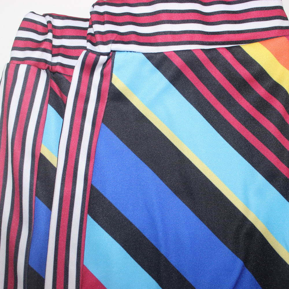 Autumn and Winter New Women Fashion Sexy Sports Stripes Contrast Color Two-Piece Set