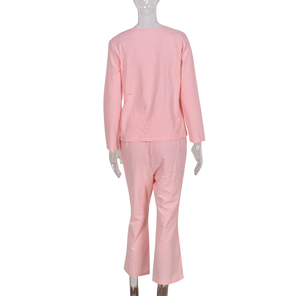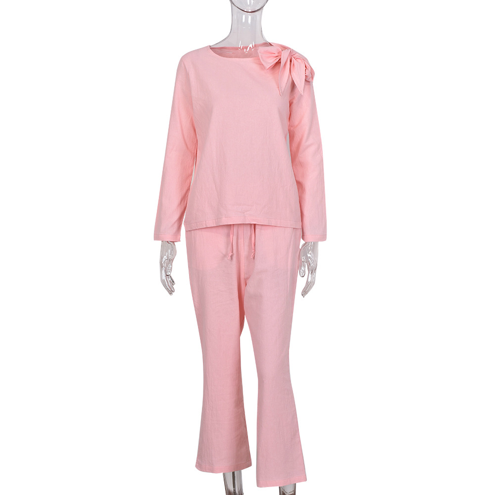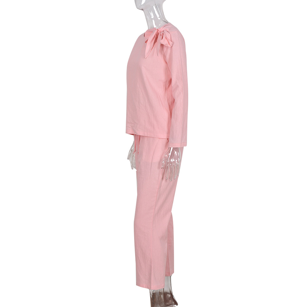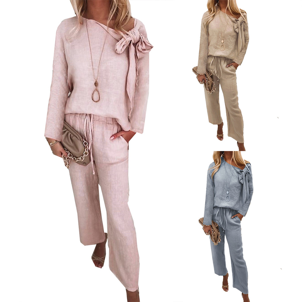 Autumn New Hot Loose Casual Lace up Knotted Long Sleeve Trousers Suit Women